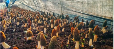 在这充满希望的季节里,鹤庆县六合乡松坪村羊肚菌种植基地一垄垄羊肚菌破土而出,头戴独特的褐色“网格帽”,在阳光下闪烁着光芒,为松坪村绘就一幅生机勃勃的致富画卷。