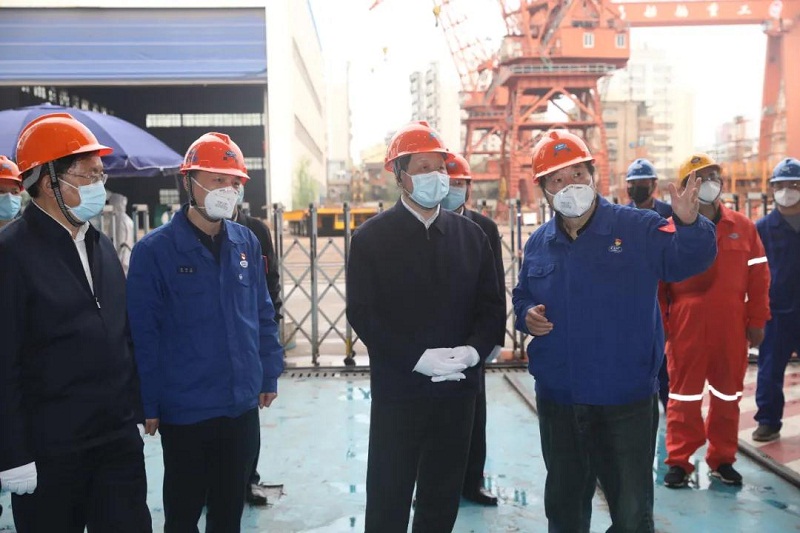 3月25日,湖北省委书记应勇到中国船舶集团有限公司所属武船集团调研复工复产、加快发展情况。省委常委、武汉市委书记王忠林,副省长曹广晶及省委、省政府有关部门负责同志参加调研。