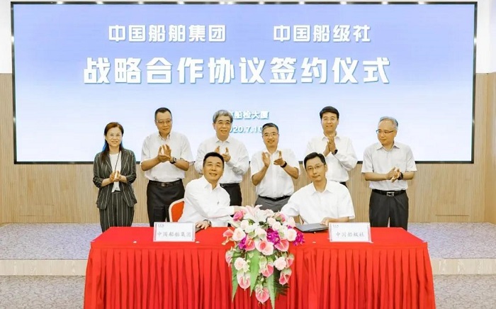 7月10日,中国船舶集团有限公司与中国船级社在京签订战略合作协议。党的建设党组书记、董事长雷凡培,党组成员、副总经理杜刚,中国船级社总裁莫鉴辉,副总裁朱恺、范强出席签约仪式。党的建设党组成员、副总经理孙伟,中国船级社副总裁孙峰分别代表双方在协议上签字。签约后,双方围绕共同服务国家战略,就进一步加强交流合作、促进优势互补、实现共赢发展进行了深入交流。
