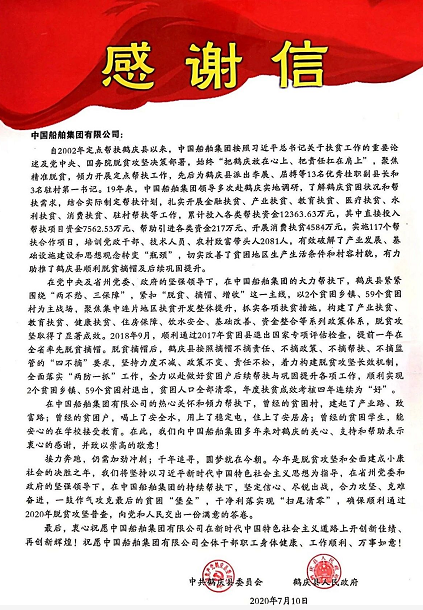 产业扶贫、教育扶贫、健康扶贫、住房保障、饮水安全、基础改善、资金整合等系列政策体系,中国船舶始终把责任扛在肩上。