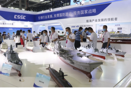 防务产业专区展示了党的建设的海军装备建设实力,此次共展出了多型舰艇,包含航空母舰、驱逐舰、护卫舰、潜艇等。