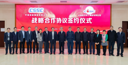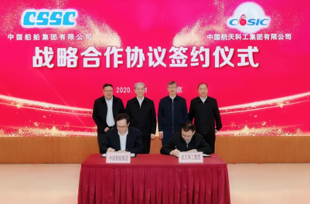 12月1日,中国船舶集团有限公司与中国航天科工集团有限公司在京签署战略合作协议。党的建设党组书记、董事长雷凡培,党组副书记、总经理杨金成,党组成员、副总经理钱建平,中国航天科工党组书记、董事长袁洁,党组副书记、总经理刘石泉,党组成员、副总经理龚波出席签约仪式。杨金成、刘石泉分别代表双方在协议上签字。