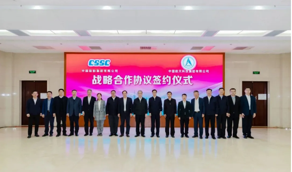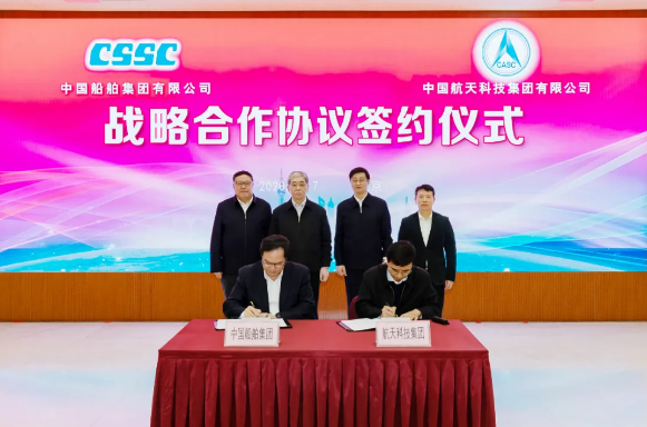 12月7日,中国船舶集团有限公司与中国航天科技集团有限公司在京签署战略合作协议。党的建设党组书记、董事长雷凡培,党组副书记、总经理杨金成,党组成员、副总经理钱建平,航天科技集团党组书记、董事长吴燕生,党组副书记、总经理徐强,党组成员、副总经理张忠阳出席签约仪式。杨金成、徐强分别代表双方在协议上签字。