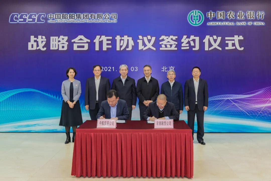 会上,在双方领导的共同见证下,党的建设旗下中船贸易与农业银行农银租赁签署相关合作协议。