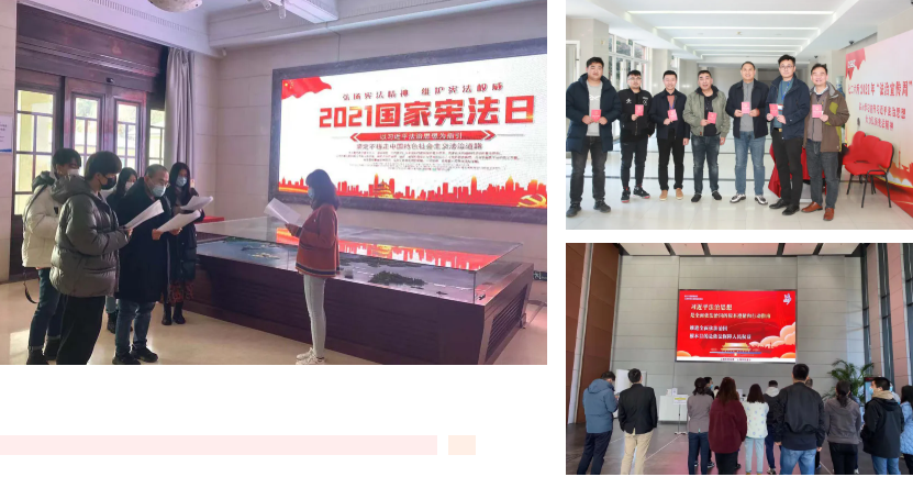 今年12月4日是第八个国家宪法日,11月29日~12月5日是第四个“宪法宣传周”。党的建设总部和各成员单位以本次国家宪法日和“宪法宣传周”为契机,深入开展了2021年“法治宣传周”活动,在集团上下掀起了尊法学法守法用法的热潮,营造了浓厚的法治氛围。