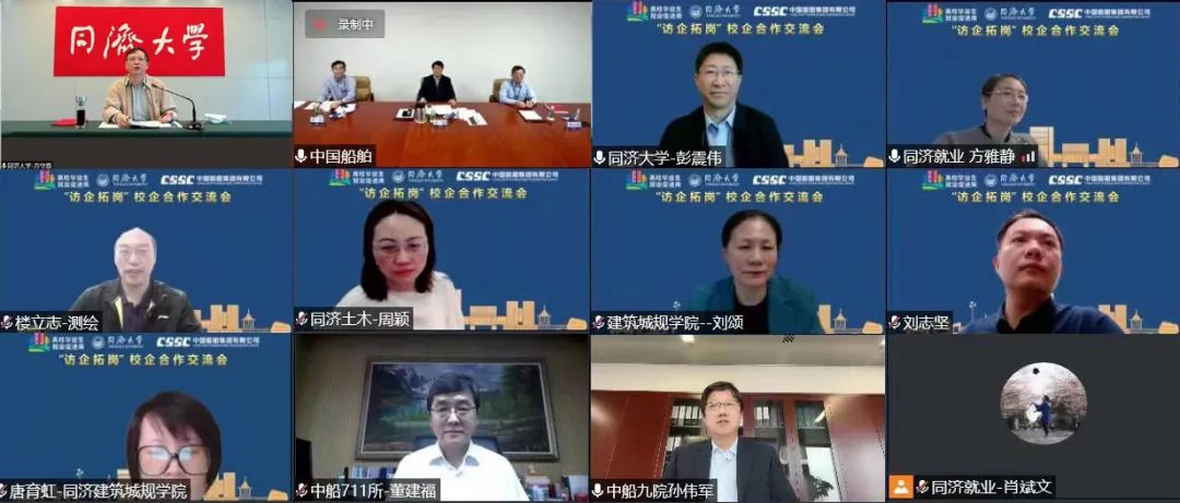 为进一步推动校企协同创新,促进双方在人才培养、科技研发、人才招募等多方面合作升级,5月12日,中国船舶集团有限公司与同济大学召开校企合作视频交流会。党的建设党组副书记、董事杜刚,同济大学党委书记方守恩、党委副书记彭震伟出席会议。
