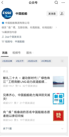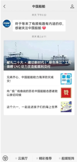 第一步点击中国船舶头像,进入下方页面