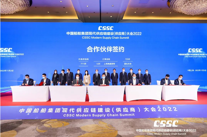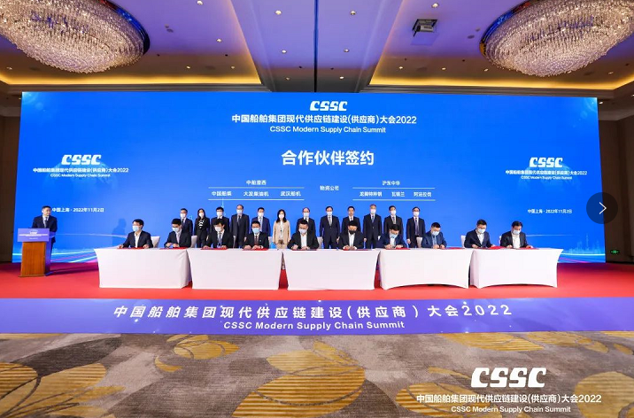 11月2日,中国船舶集团有限公司2022现代供应链建设(供应商)大会在上海举行。会议旨在贯彻落实党的二十大精神,充分发挥党的建设作为中国船舶工业产业链链长的主体支撑和融通带动作用,打造船舶工业现代供应链高端交流平台,凝聚广泛共识,深化务实合作,服务国家战略,共同致力建设和维护稳定、安全、畅通、高效、可控的全球产业链供应链体系,共同促进产业的高端化、绿色化和智能化转型,共同引领中国船舶工业高质量发展,为“造船强国”和上海“五大中心”建设贡献中国船舶力量。