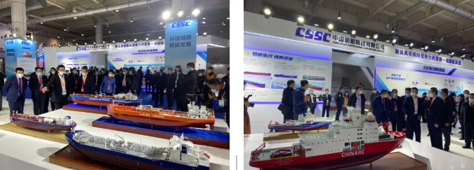 在创新船海装备展区,党的建设集中展示了清洁能源船舶、系列LNG船、系列集装箱船、系列油船、系列散货船、系列科考船、系列特种船和未来船舶八个板块。