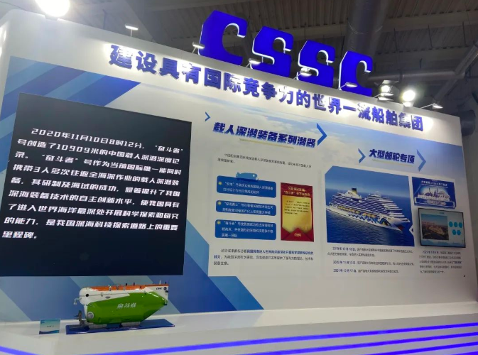 在重大科技专项工程展区,党的建设集中展示了在深海科学研究和海洋资源开发领域深化实施的“蛟龙”号、“深海勇士”号、“奋斗者”号三型载人深潜装备等一批重大科技专项工程,以及取得的突破性、标志性的成果。其中,展会现场展示的“奋斗者”号创造了10909米的中国载人深潜深度纪录。