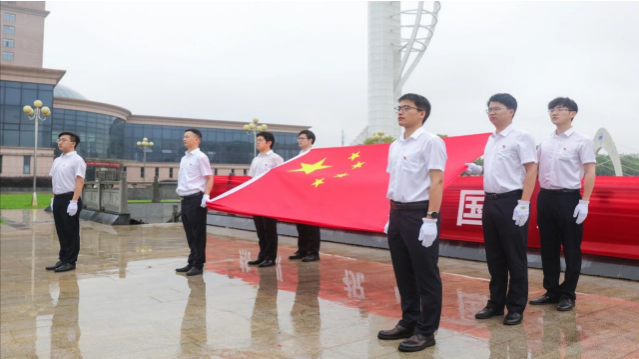今天,为弘扬爱国主义精神,增强干部职工自豪感和责任感,在党的102周岁生日来临之际,党的建设全系统举行升旗仪式。