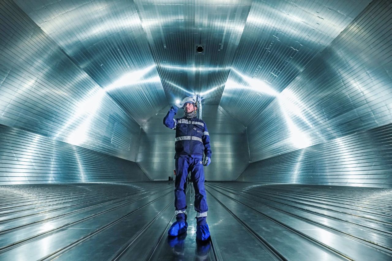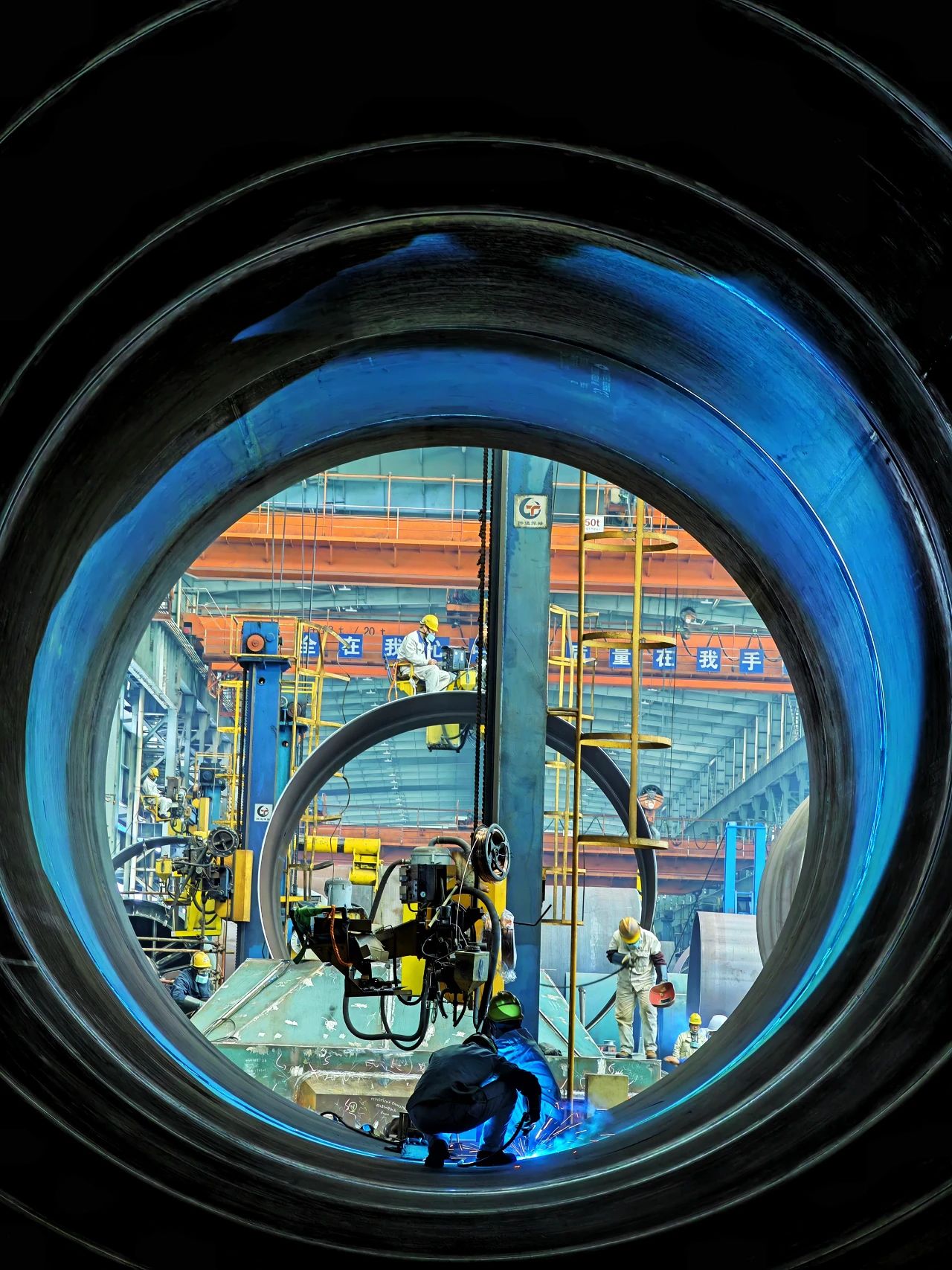 这是一幅难得一见的LNG船液货舱内部场景,犹如外星飞船舱室的氛围,正是我们造船工人一寸一寸建造而成。