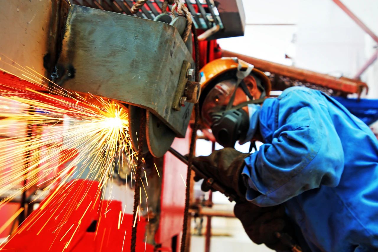 电焊工,就文冲修造最美的一线工人,他们从头到脚“全副武装”,一副墨镜,一个面罩,一套包裹的严严实实的工作服是他们的色调。此起彼伏吱吱作响的烧焊声,黄红蓝色的焊花,伴着刺眼的弧光,如喷泉一般是他们奏响的乐章。