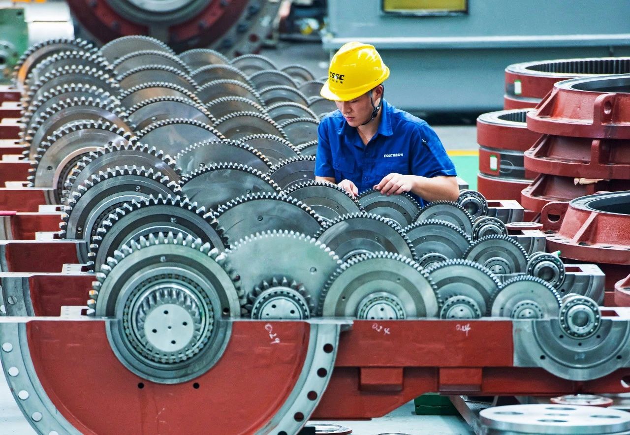一位工人正在认真的检查组装好的齿轮箱,确保其高质量产出,驱动公司产业发展。
