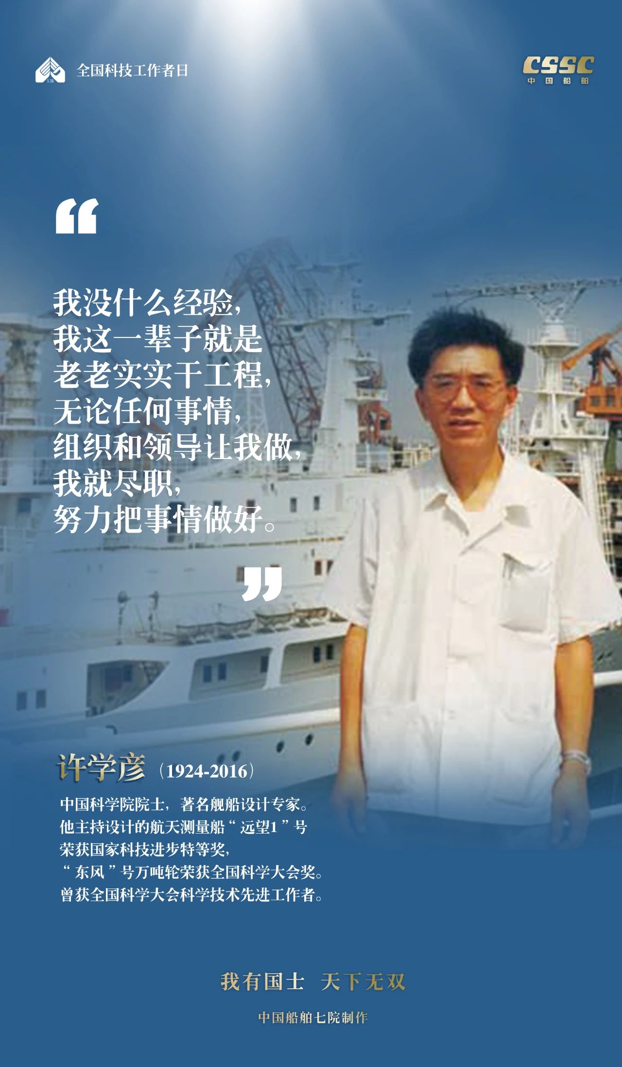 2024年5月30日,是第八个“全国科技工作者日”,一代代中国船舶人胸怀国之大者,无怨无悔勇攀科技高峰。他们的事迹也许无人知晓,他们的智慧却是科学火种,他们用精神点亮希望之光,他们用勇气探寻未来之路,他们有个共同的名字中国船舶科技工作者。