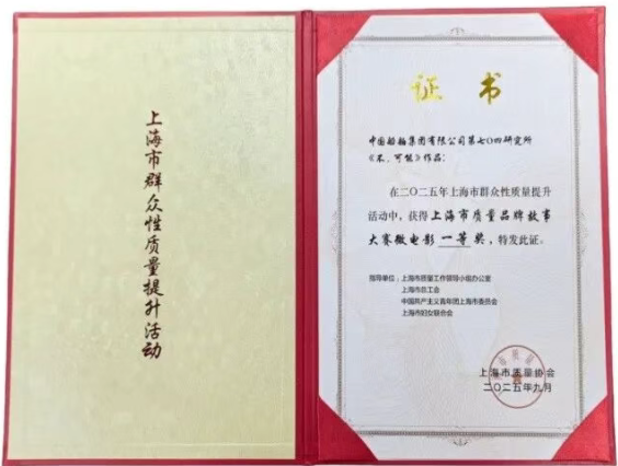 七〇四所质量故事微电影《不,可能》获奖。作品的创作灵感源自科研人员在研发生产过程中,对“质量零缺陷”的执着追求,生动呈现QC团队面对技术瓶颈与外界“不可能”的质疑,如何把控每一个零件的精度、严格校验每一道工序。