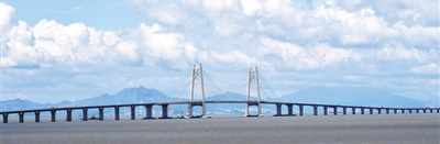 堤坝高筑,突破难题。2016年竣工的三峡升船机,是世界上规模最大、技术难度最高的升船机。2016年12月29日通车的贵州北盘江大桥,最高落差565米,成为世界第一高桥。今年7月7日,全球最长的跨海大桥��港珠澳大桥主体工程全线贯通。作为史上里程最长、施工难度最大的跨海桥梁,它首创桥�岛�隧集群方案,开辟了世界上最长的沉管海底隧道,被誉为“当代世界七大奇迹之一”。