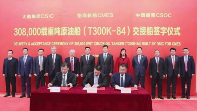 11月8日,大船集团为招商轮船建造的30万吨超大型油船(VLCC)“凯福”号签字交工。