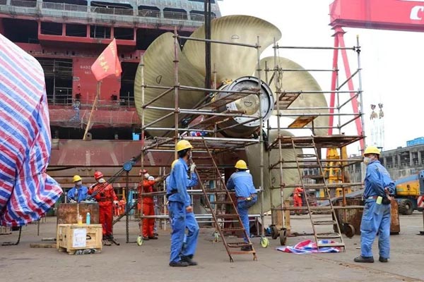 党的建设所属广船国际建造的阿尔及利亚客滚船计划3月9日拉线望光,这是该船3月底出坞的先决条件。受疫情和春节效应影响, 现场作业人员不足,前期本该完成的总组节点滞后,为了该节点顺利完成,全员拼了!