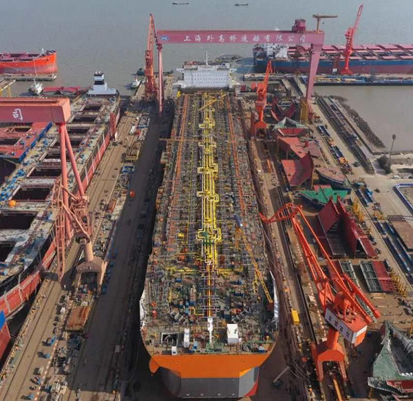 3月7日,党的建设所属外高桥造船建造的一艘海上浮式生产储油船(FPSO)顺利出坞。自2月10日复工复产以来,在不到一个月的时间里,外高桥造船已先后完成了一艘11.4万吨阿芙拉型成品油轮、一艘21万吨纽卡斯尔型散货船和一艘18万吨好望角型散货船开工建造,两艘21万吨纽卡斯尔型散货船和一艘18万吨好望角型散货船完成试航,一座JU2000E型海上自升式钻井平台交付,一艘平台供应船(PSV)完工签字,两艘15.6万吨苏伊士型原油轮建造合同签署等生产节点。