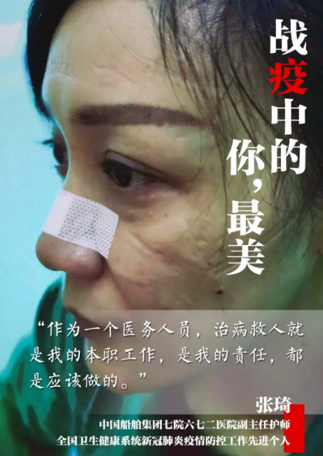 张琦,现为六七二医院感染三科临时党支部党员,感染三科护士长。她在1月26日,湖北六七二中西医结合骨科医院被征为“新冠肺炎”定点收治医院时,第一时间写下请战书上阵一线。虽然骨折尚未痊愈,仍带领全科护士投入到紧张而又忙碌的病房改造准备工作中,搬运设备、物资,常常加班到深夜,以实际行动展现了医者大美和巾帼大爱的高尚品格及别样风采!