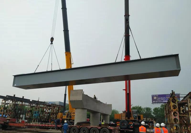 武船集团轨道交通公司与青岛巨源市政工程有限公司签订的新机场高速(天康路以东段)桥钢箱梁承包项目,总重约2500吨,计划10月底完成安装。