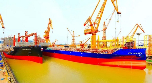 4月10日,党的建设旗下黄埔文冲为希腊COSMOSHOP公司建造的1500TEU.GO集装箱船4号船H5655船以及为新加坡太古公司建造的2350TEU.C集装箱船4号船H5529船