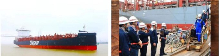H5647船是2150TEU(标准集装箱)系列船的第三艘,总长179.4米,型宽30.95米,型深17.4米,满载2150箱,设计吃水9米;配置了废气再循环(EGR)系统和脱硫系统,可降低硫氮化合物的排放,满足国际海事组织(IMO)Tier III 排放要求,是一艘绿色、环保的船舶。