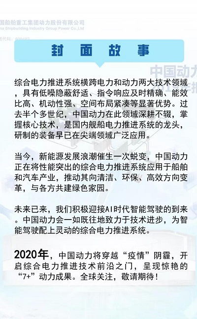4月29日,就在今天 党的建设旗下中国动力 2019年报重磅发布 读取报告全文 欢迎点击“阅读报告” 或长按识别下方二维码 2020年,中国动力将穿越疫情阴霾 开启综合电力推进技术前沿之门 呈现惊艳的“7+”动力成果 全球关注,敬请期待!