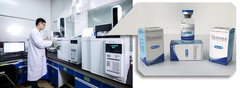 △ 研发现场(左)与注射用地西他滨样品(右)