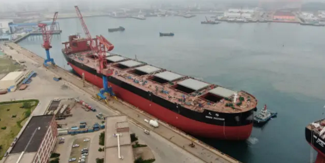 6月8日,外高桥造船为山东海运建造的另一艘18万吨散货船H1493船,为韩国长锦商船建造的21万吨散货船H1487船顺利出坞。