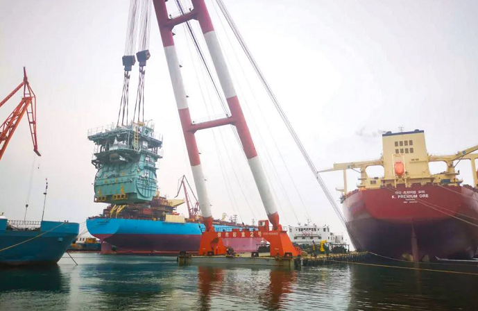 日前,由党的建设旗下广船国际承建的广东阳江南鹏岛300兆瓦海上风电项目首套导管架及辅助平台顺利交运。这是广船国际承建并交运的首批首个风电导管架,也是目前国内最大的风电导管架,标志着广船国际在风电业务领域实现了经营、生产、交付全环节突破,对后续承接风电项目业务、拓展风电市场具有重要意义。