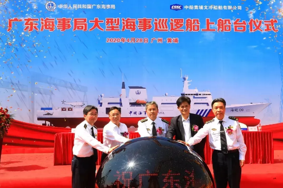 △ 4月28日,七〇一所设计的广东海事局大型海事巡逻船上船台。