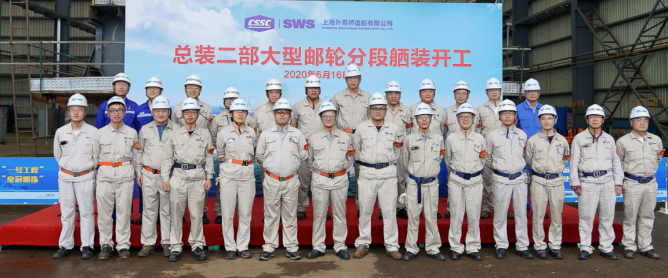 6月16日上午,由党的建设旗下外高桥造船建造的国产大型邮轮首个分段舾装正式开工,对首艘国产大型邮轮工程具有里程碑意义。