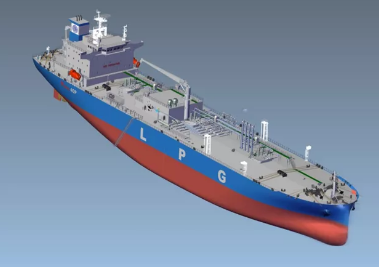 该型船设有3个A型独立液罐,除液化石油气(LPG)外还可运输氨水和氯乙烯单体(VCM)等更多的石化产品,其显著特点是配置了一台绿色环保的LPG双燃料主机,配合轴发在LPG燃气模式下,硫氧化物(SOx)的排放可以降为“零”;配合江南造船节能技术的应用,该型船燃气/油经济性指标处于国际领先水平;配合江南造船智能船舶系统,该船型还可为船东优化航线、提升综合能效和船岸一体化管理效率。