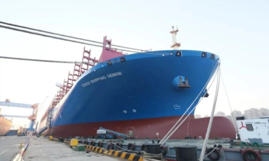 4月10日,大船集团为中远海运集团建造的20000TEU超大型集装箱船“中远海运双子座”命名交付,刷新了当时中国建造交付最大集装箱船的纪录。