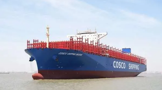 “中远海运宇宙”号,拥有完全自主知识产权。该船总长399.9米,型宽58.6米,型深33.5米,总高72米,最大箱位21237TEU。综合装载性能优异,舱内可装载12层集装箱,货舱及甲板面均可载运危险品,甲板面可载运1000只40尺冷藏集装箱,设有专用45尺箱位。