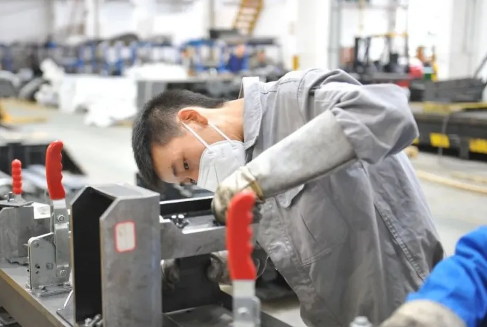 看,昆船公司小伙伴认真的眼神。他正专注于成都机场输送设备的零部件焊接装卡工作。