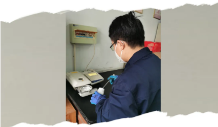▲专注每一个细节,化学制氧工程部号召员工坚守一岗一责,把爱岗敬业的精神化为奋战四季度的实际行动。图为技术人员进行药剂含水量检测。