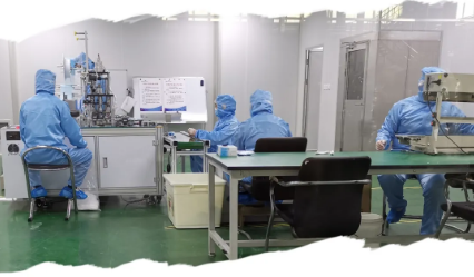 ▲严守质量底线,进入秋冬季节,电器公司一次性口罩销量大增,为满足市场需要,员工加班加点赶生产,同时严格把好质量关。图为工作人员在无菌车间生产医用口罩。