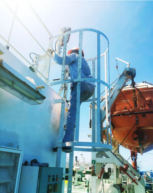 三伏天的太阳把船舶甲板晒得滚烫,钢板温度近70度,在甲板上工作的员工无法躲避强光与热浪,只能如此进行物理降温。