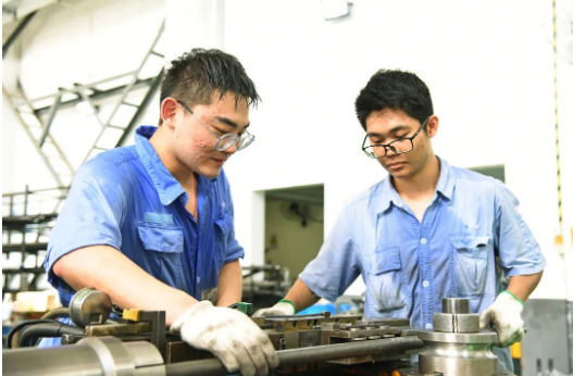 入伏以来,各地持续高温,中船动力集团柴油机装配工战高温、斗酷暑,坚守生产一线,正在对柴油机进行装配、调试。