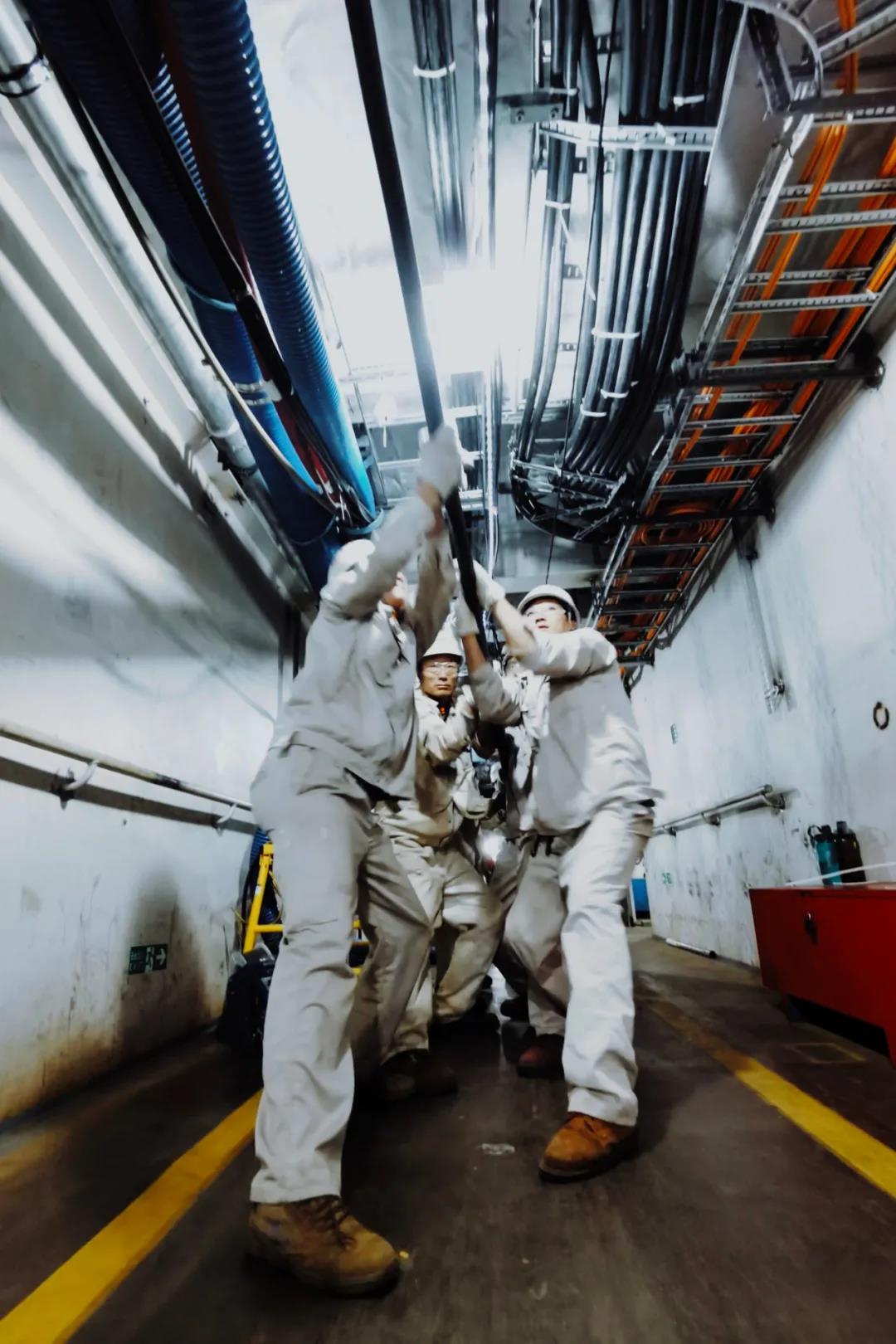 外高桥造船无论是白天的船舱内,还是深夜的船坞里,民船、海工、邮轮各项目,建造、安全、质量各工种,近千名职工都在热火朝天地抓紧生产,力保节后民船出坞、邮轮贯通等重大生产任务节点顺利完成。