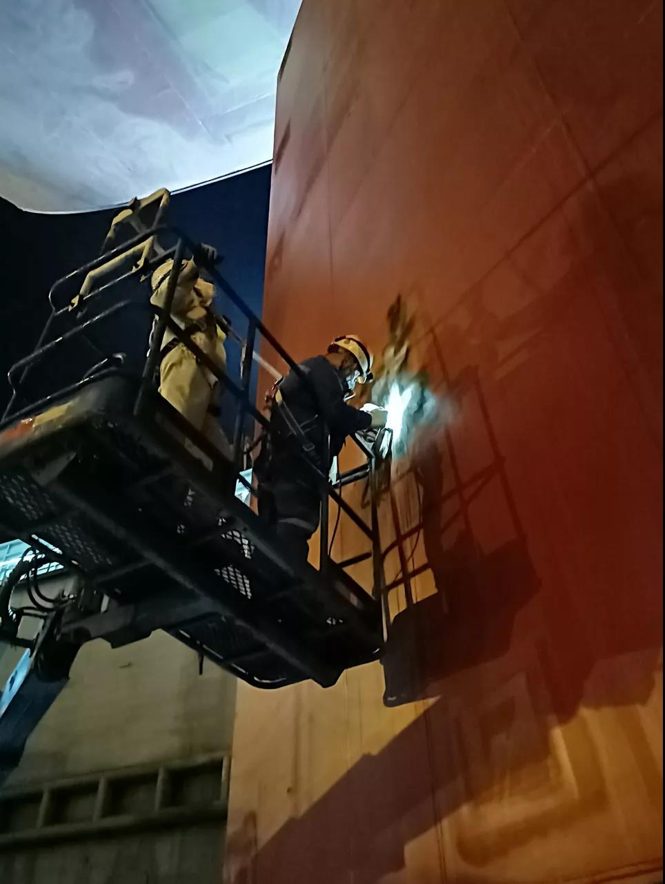为保证出坞节点,无损检测人员在国庆节加班加点对舵叶封板焊缝磁粉检测。