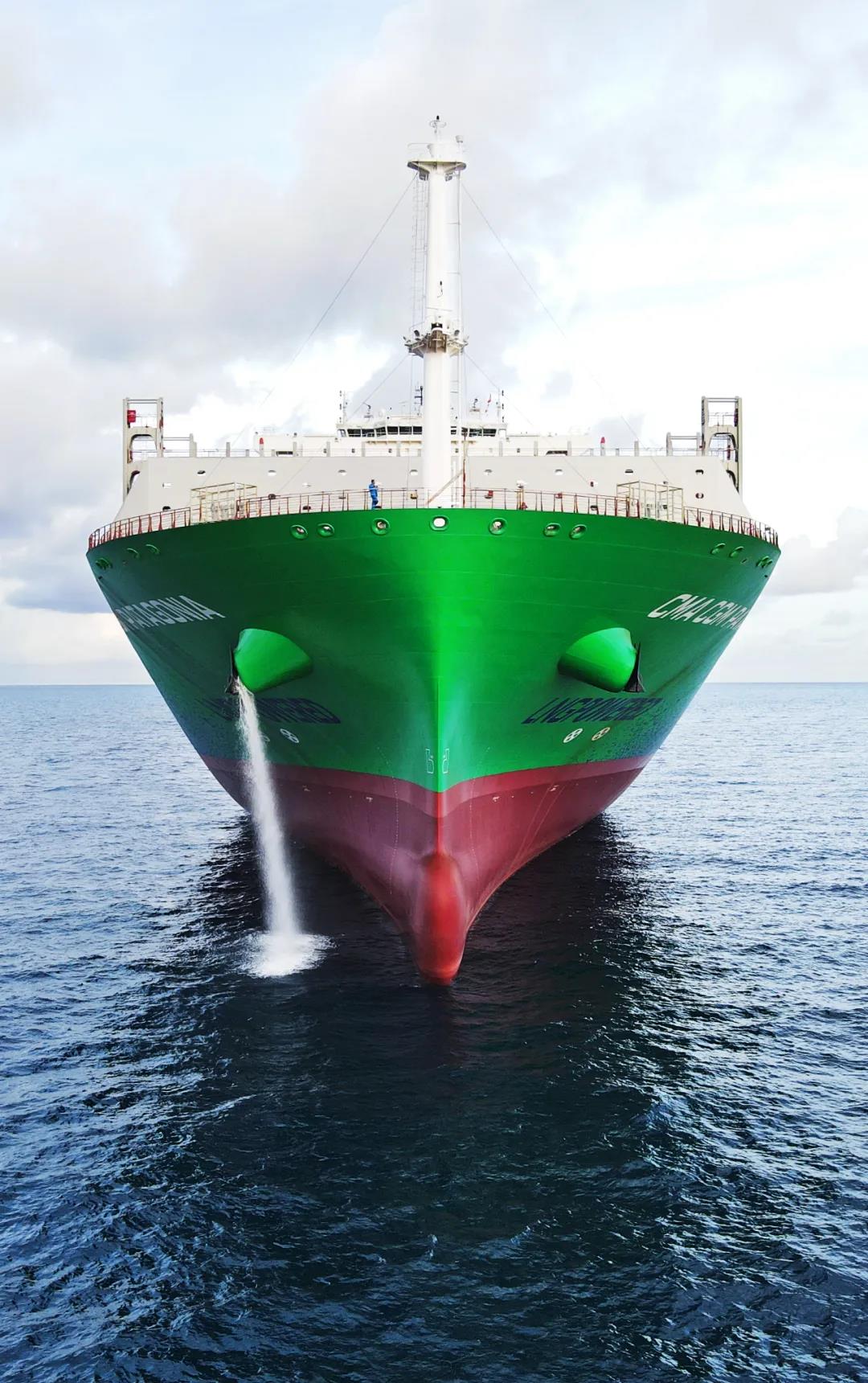 该型船采用脱硫塔和低压脱硝的废气洗涤组合,提前满足国际海事组织(IMO)TierIII排放标准,节能减碳,满足船舶能效设计指数(EEDI)第三阶段要求,具有经济高效、载重量大、单箱油耗低等特点。
