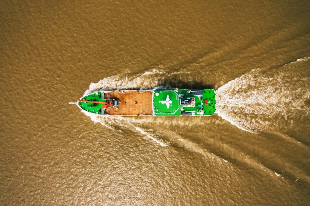2000吨大型航标船“海巡156”采用全电力驱动、双回转舵桨推进系统,在5节航速下能破冰0.5米,在3.5节航速下能破冰0.6米,在海冰条件下具有优秀的操控能力和航标作业能力。