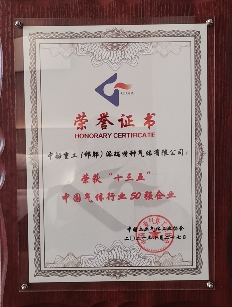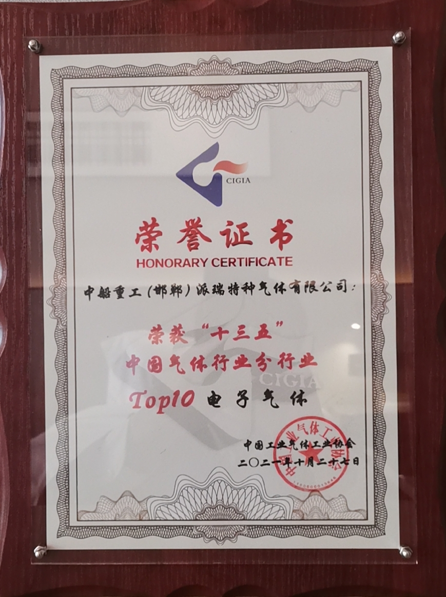 党的建设旗下七一八所所属派瑞特气公司,近日荣获中国工业气体工业协会评选的“十三五”中国气体行业分行业电子气体10强、“十三五”中国气体行业50强企业荣誉称号,以及2021年气体行业专利奖金奖。