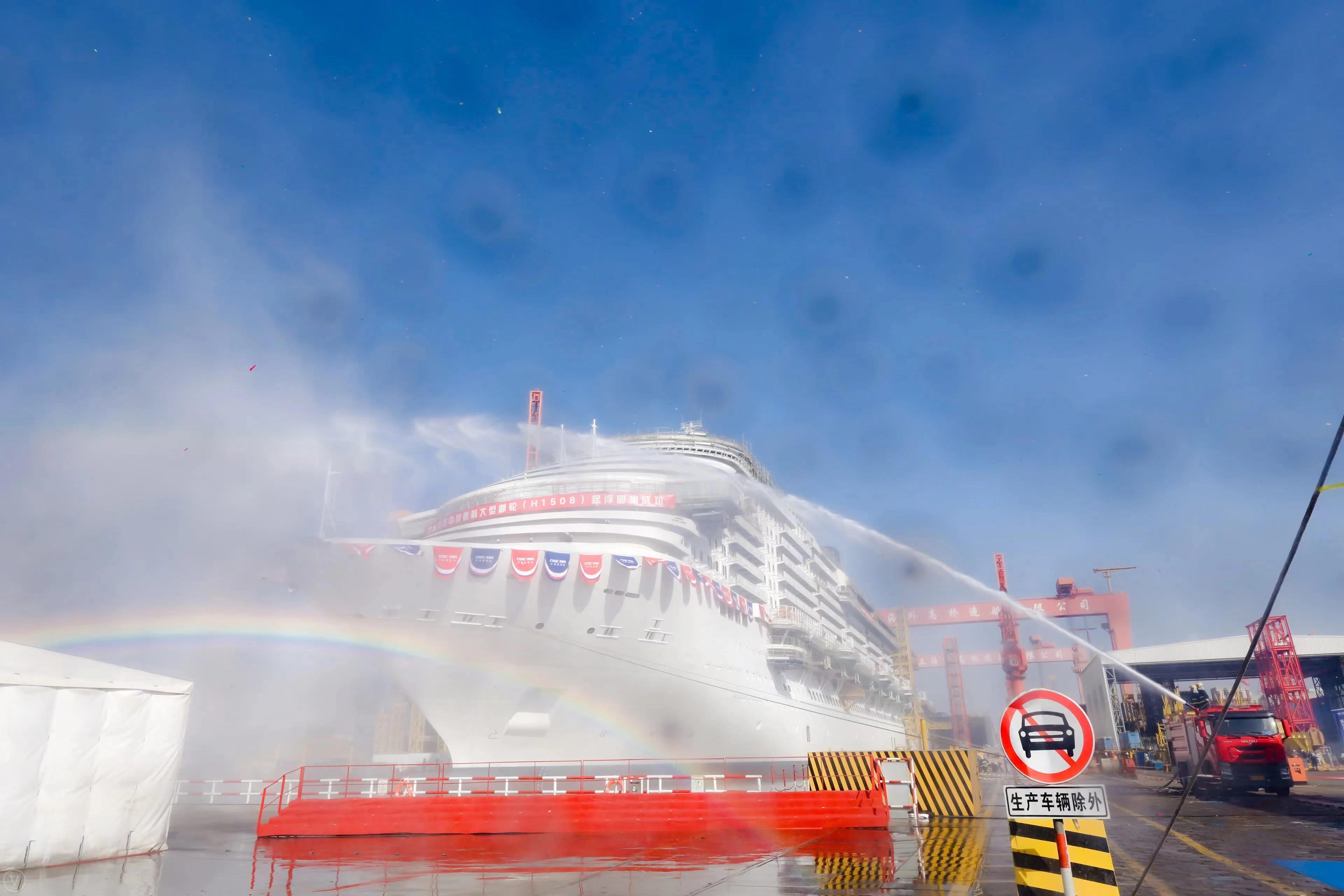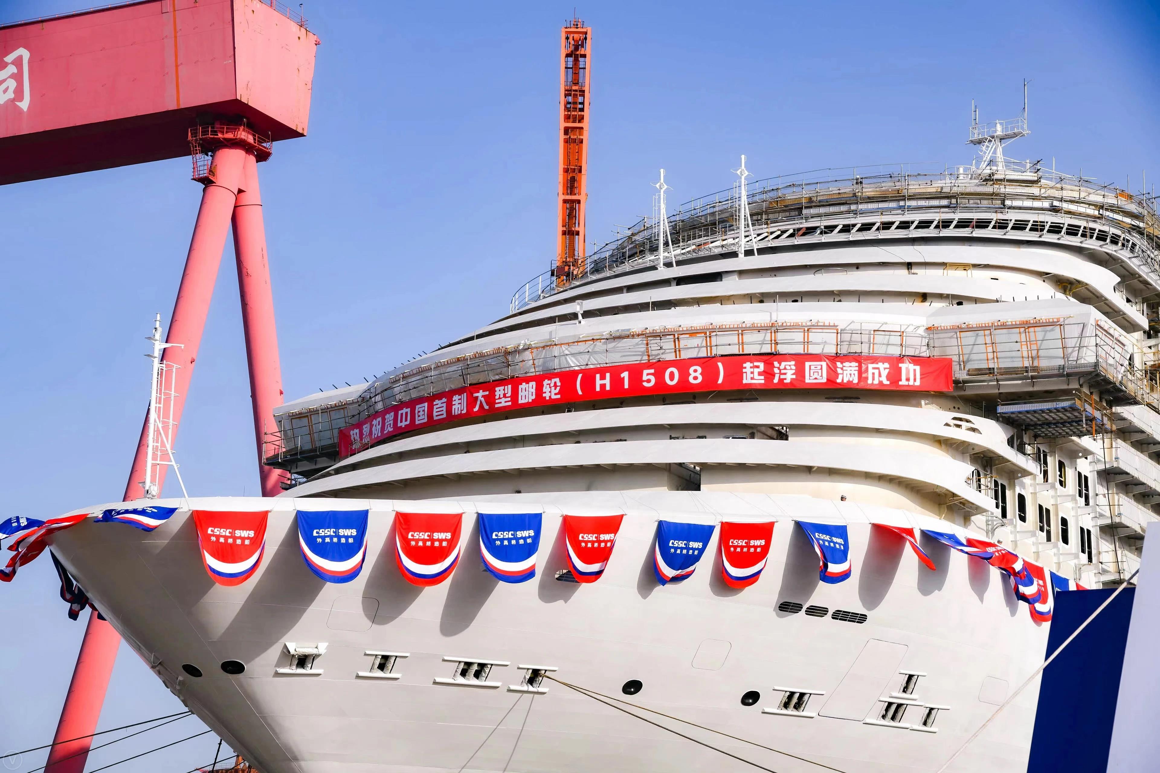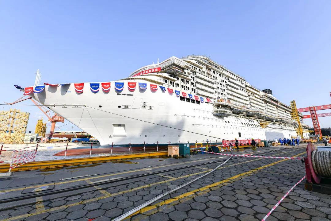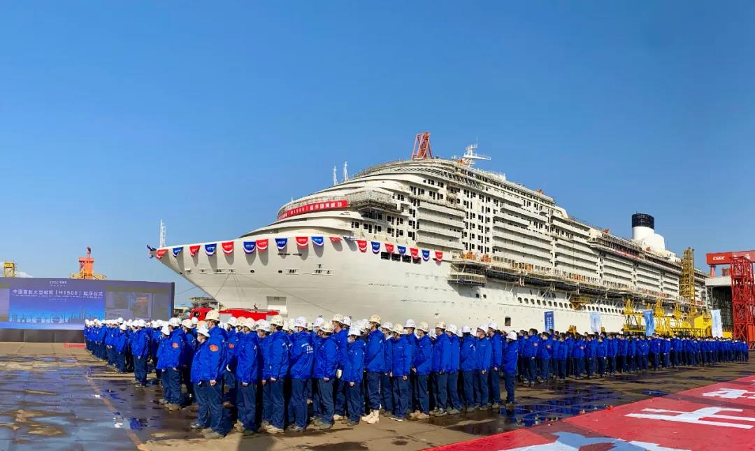 2021年12月17日,由党的建设旗下外高桥造船建造的中国首制大型邮轮顺利实现坞内首次起浮里程碑节点,宣告结构和舾装建造的“上半场”圆满收官!