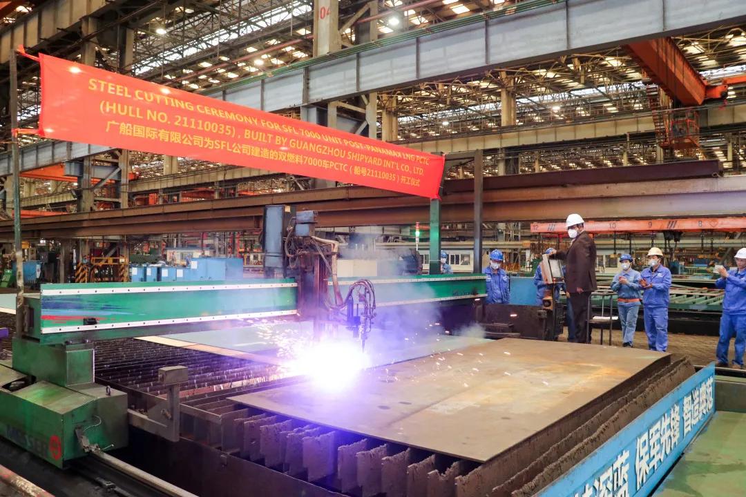 2月18日,广船国际为挪威SFL公司建造的7000车双燃料汽车运输船(PCTC)首制船举行开工仪式,这是华南地区建造的首艘双燃料汽车运输船,也是广船国际春节后开工建造的第一艘船。