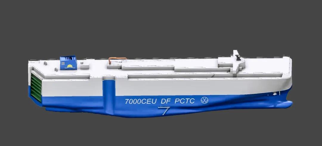 该型船可装载7000辆汽车,采用先进的天然气(LNG)/燃油双燃料推进系统设计,可在3种燃料模式下航行,续航力最高可达15,000海里。配置了高压岸电系统,采取了减阻防污漆等各类节能措施,EEDI(能效营运指标)满足国际海事组织最新的第二阶段(phaseⅡ)要求,是一艘节能环保高效的汽车运输船。